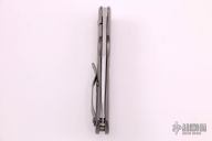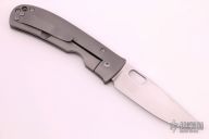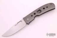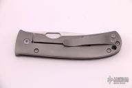 This TNT Framelock by Tom Mayo features a hand rub satin finished blade with a thumbhole. The handle has a bead blast titanium frame with titanium tip up clip, all titanium hardware. Smooth action. Nice detent, blade seating and lockup. Comes with Velcro case. Excellent condition.