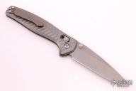 This 781 Anthem by Benchmade features a tumble finished drop point blade with dual thumbstuds. The handle is comprised of a machined and integrally constructed frame with axis lock and matching reversible tip up clip. Comes with original box and papers. Excellent condition.
