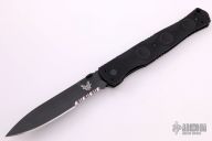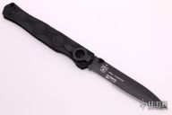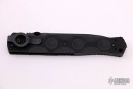 This SOCP 4.5 by Benchmade features a black blade with a partially serrated edge and a thumbdisc. The handle has black G-10 scales, black stainless steel liners and clip, 4-way reversible. Excellent condition. First Production Run #268 of 1200
