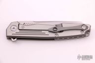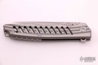 This Framelock Flipper by TwoSun knives is a Night Morning Design features a satin finished blade with a notched flipper. The handle has a two-tone titanium frame with a matching tip up clip and backspacer, has stainless steel lockface insert. Rides on bearings, nice detent, lockup and blade seating. Comes with original box. Excellent condition.