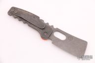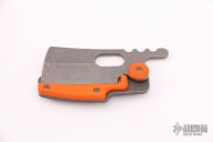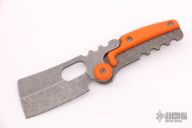 This Custom Thorn Gen3 friction folder from Serge Panchenko features a chisel ground stonewashed blade with thumbhole and notched thumbrest. The handle is stonewashed titanium with orange G-10 backstop and pivot ring, stonewashed tip up titanium clip. Excellent condition.