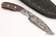 "I began making knives at age twelve to have a quality working knife for use on the family ranch. I started out using a coal forge, a hammer, and an anvil. At age 23 I started experimenting with Damascus, and I've been hooked ever since. I experimented with several different steel combinations and created a variety of styles from bowies to miniatures. While trying to master the basic Damascus patterns, I was introduced to the challenges of mosaic Damascus. I am particularly interested in this form of Damascus because it offers almost limitless opportunities for artistic creativity. I began making mosaic Damascus in 1995 after hosting a hammer-in where Steve Schwarzer demonstrated his cutting-edge work in this field. In 2000, I received my Mastersmith rating from the American Bladesmith Society. The following year I was the first recipient of the Jim Schmidt Award at the East Coast Custom Knife Show in New York City. In addition, I have since been awarded Best Damascus Knife at the Blade Show twice, and won three Blade Handmade Awards."