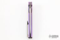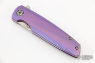 This Specter by Holt Bladeworks features a high polish blade with a notched thumbrest and flipper tab.  The handle features a milled and anodized titanium frame with a bead blasted tip down pocket clip.  Nice detent, lock up and blade seating.   Includes the original box and papers.  Light scratches are visible on the pocket clip otherwise the knife is in excellent condition.