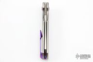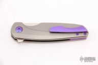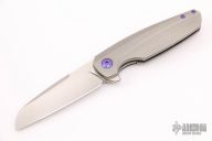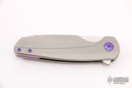 This Haptic by Holt Bladeworks features a tumbled blade with a notched thumbrest and flipper tab.  The handle features a milled and titanium frame with an anodized titanium  tip down pocket clip with matching hardware.  Nice detent, lock up and blade seating.   Includes the original box and papers.  Excellent Condition.