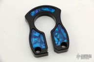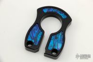 This Keeper by John Gray is made from .430" thick stock aluminum that has been black coated with blue abalone inlays. Has a bottle opener at the opening. New from maker at the 2022 LVCKS.