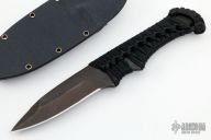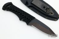 This Blood Shark by Tracker Dan features a black finished blade with a sharpened top edge, .152" blade stock and .974" blade depth. The handle has flat black cord wrap. Comes with a kydex sheath and the knife will fit in either direction. Excellent Condition.