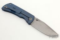 This MAC2 features a bead blasted drop point blade with dual thumbstuds and a notched thumbrest. The handle features an anodized titanium frame with a matching tip up pocket clip. Includes box and papers. New from Maker!