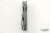 This MAC2 features a bead blasted drop point blade with dual thumbstuds and a notched thumbrest. The handle features an anodized titanium frame with a matching tip up pocket clip. Includes box and papers. New from Maker!