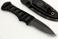 This Bloodshark by Tracker Dan features a black flat ground blade, .181" blade stock and .993" blade depth. The handle has a black cord wrap. Comes with a kydex sheath and the knife will fit in either direction. Excellent condition.