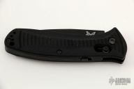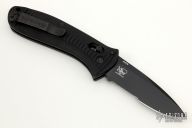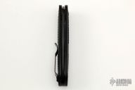 Mel Pardue design. Ambidextrous Auto Axis Pull Button Release - allows for automatic opening with either hand by pulling either Axis button back (buttons on each side of the handle). Integrated spine mount safety. Bi-directional machined handle grip for a superior sure grip. Includes original box, sheath and paperwork. Excellent condition.