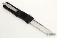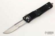 This Combat Troodon OTF automatic features a stonewashed S/E blade with a partially serrated edge. Stainless steel clip, tip down carry. Glass breaker. Serial number 09732 and dated 04/2014. Comes with original box and papers. Excellent condition.
