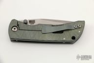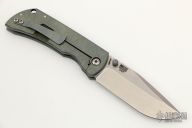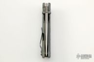 This MAC2 features a stonewashed drop point blade with dual thumbstuds and a notched thumbrest.  The handle features a carved and anodized titanium frame with a matching tip up pocket clip.  Includes box and papers.  Has a couple scuffs, otherwise excellent condition.