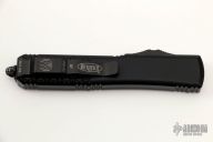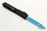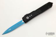 This Ultratech OTF automatic by Microtech features a D/E blue blade. Black aluminum contoured frame with black tip down stainless steel clip. Dated 09/2021 and s/n 5706. Excellent condition. Comes with original box and papers.