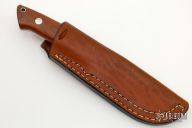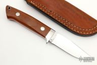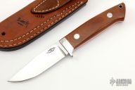 This Hunter by Vojtech Destensky features a mirror polished clip point blade, .172" blade stock and .990" blade depth, full tapered tang construction. The handle has a stainless steel guard and micarta scales over red fiber liners, lanyard tube in pommel. Includes leather sheath with belt loop.  Includes COA. Excellent condition.