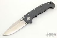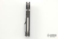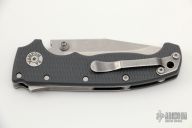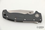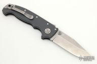 This AD20 by Andrew Demko features a stonewashed blade with satin finished flats and dual thumbstuds.   The handle has a gray grivory frame with a tip up stainless steel clip and "Shark" lock release on the spine. Comes with original box and Lynch deep carry clip. Has a couple light scratches, otherwise excellent condition.