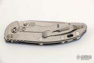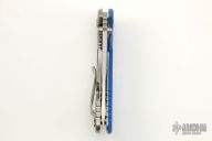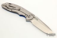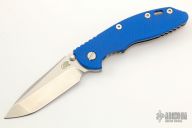 This XM-18 Spanto by Rick Hinderer Knives features a 3.5" stonewashed blade, notched thumbrest and dual thumbstuds. The handle has a translucent blue G-10 scale, and stonewashed titanium handle/clip. Clip can be mounted for tip up or down carry. Nice lockup, seating, and detent. Excellent condition. Comes with original box.