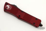 This Combat Troodon OTF automatic features a black D/E blade with one fully serrated edge and a Merlot aluminum frame. Stainless steel clip. Glass breaker. Serial number 29834 and dated 09/2020. Comes with original box and papers. Excellent condition.