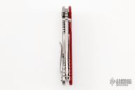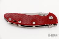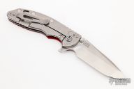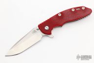 This XM-18 Flipper by Rick Hinderer Knives features a 3.5" stonewashed finished S45VN blade, notched thumbrest and flipper, dual thumbstuds. The handle has a red G-10 scale, anodized and stonewashed titanium liner, anodized titanium hardware, stonewashed titanium lockside. Clip can be mounted for tip up or down carry. Nice lockup, seating, and detent. Comes with extra pivot hardware. Excellent condition.