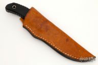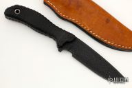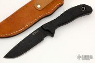 This SYKCO 411 by Scrapyard Knives features a drop point black coated SR101 blade, .196" blade stock and 1.268" blade depth, hidden tang construction. The handle is black rubber with lanyard hole. Comes with brown leather sheath. Excellent condition.