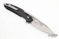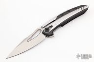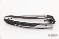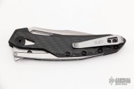 This ZT is reliably strong thanks to its steel construction. Other elements pay homage to the original 0999, including an exposed “floating bridge” near the top of the handle, carbon fiber scales with a front steel overlay, and cutout windows in the blade and near the pivot. Instead of a ZT logo on the blade itself, the words “Zero Tolerance” are subtly embossed into the backspacer. The CPM-20CV blade offers excellent edge retention and opens reliably with KVT ball bearings. Includes the original box and papers. Ser 0813. Excellent Condition.