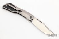 Celebrated knife maker Elijah Isham is kicking off his production line with the Blackstar Slip Joint folder. This model is equipped with a classic bowie blade and a titanium handle with carbon fiber inlays. The Blackstar offers a compact and stylish design that is perfect for your everyday carry rotation. An integral flipper tab provides satisfying deployment and low-profile carry. Pick up a sleek and affordable slip joint design with the Isham Bladeworks Blackstar. Features: CPM-20CV steel provides added blade strength and wear resistance. Ambidextrous deployment with a tang flipper or nail nick. Item includes a titanium pocket clip for tip-up carry. Comes with original box and zippered case. Excellent condition.