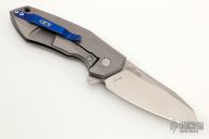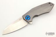This ZT 0456 by Zero Tolerance features a satin finished clip point blade with swedge and flipper. The handle has a machined titanium frame over an anodized aluminum backspacer. Lanyard hole in pommel and after market machined titanium clip is positioned for tip up carry. Includes original box and papers. Excellent condition. #9280.