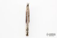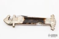 This is a large lockback by Parker Cutlery Company features a satin finished blade with nail nick. The handle has nickel silver bolsters and jigged bone scales, brass liners, stainless steel backspacer. Blade is imprinted with "Liberty" Serial# 137. Comes with original box. Excellent condition.