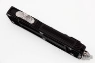 This Scarab II OTF by Microtech features a stonewashed M390 blade S/E, Black aluminum handle with a single glass breaker. Comes with original box and papers. Dated 04/2021 Serial number 1790. Excellent condition.