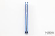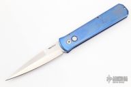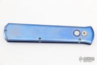 This Godfather from Pro-Tech Knives features a satin finished spear point blade with swedge that was hand ground by WR Clark. The handle has a blue anodized titanium frame. Includes the original box and papers. Excellent Condition.