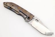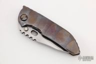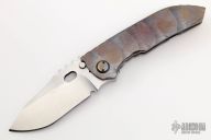 This Sirius framelock folder from Dalibor Bergam features a satin finished blade with thumb hole and notched thumbrest. The handle has an anodized and contoured titanium frame with a tip up titanium clip with matching finish. Nice detent, blade seating and lock up. Comes with nylon zippered case and COA dated June 12, 2015. Excellent condition.