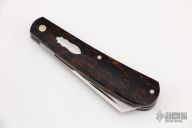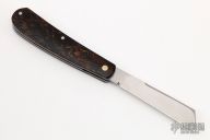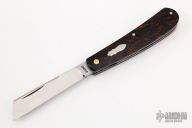 This Swayback by JH Lloyd features a satin finished wharncliffe blade with nail nick. The handle has rag micarta covers with stainless steel escutcheon, liners and spring. Has half-stop, flush in all positions. Comes with zippered case. Has a couple light scratches, otherwise excellent condition.
