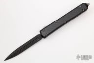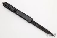This Makora II OTF automatic features a black double edged blade and carbon fiber inserts on both sides of the black aluminum handle. Dated 03/2008 with a S/N of 01909. Comes with original box and papers. Excellent condition.