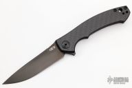 The Dmitry Sinkevich designed ZT 0450CF knife is a compact version of the award-winning 0454 folder. It has an S35VN stainless steel blade with a black DLC finish. A flipper and the KVT ball-bearing pivot produce reliable, quick one-hand deployment. The titanium handle has a sturdy frame lock and a stylish carbon fiber scale that contrasts nicely with the black blade. A reversible tip-up carry pocket clip rounds out the package. Excellent condition. S/N 17855.