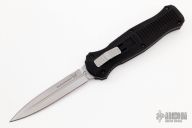"Introducing an OTF like none-other.. The new Infidel® is rapidly making believers out of many a skeptic. Built for strength and reliability the patent pending double-action mechanics get it done over the long haul. Grab on and you will find the handle grip rock-solid with its patented machined in Presidio® style bi-directional tread pattern, and overall generous sizing for gloved hands. Intuitively pressure the release-slide forward and its spear-point edged steel fires and locks up with a unique three-point retention system with amazingly negligible blade play. Reverse the process and the blade retracts in a rapid blur of motion. The Benchmade Infidel is a special operator’s fantasy come true."  Excellent Condition.