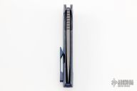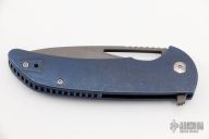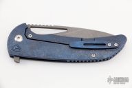 This Archbishop by Ferrum Forge features a tumbled drop point blade with thumb hole and flipper. The handle has an anodized and tumbled titanium frame with matching backspacer and tip up clip. Excellent condition.
