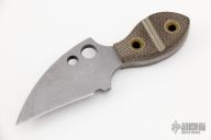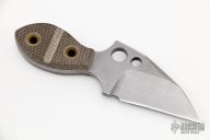 This Plan C from Mr. Horton features a chisel ground stonewashed blade with swedge, .175" blade stock and 1.455" blade depth, full tang construction. The handle has green canvas micarta scales. Excellent condition.