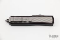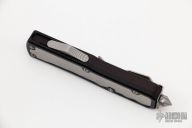 This Daytona OTF automatic from Microtech features a S/E DLC black coated blade and bubble inlays. Stainless steel clip. Glass breaker. Serial number 00708. Includes original box and papers, and nylon belt sheath. Excellent condition.