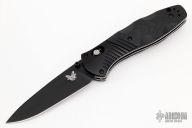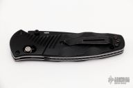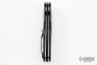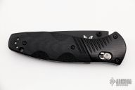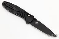This 581 Barrage by Benchmade features a black drop point blade with AXIS assist locking mechanism. The handle has milled black aluminum bolsters and carved black G10 scales. It has a milled g10 backspacer, a lanyard hole at the butt, and a reversible tip up carry clip. Nice action, lockup and blade seating. Excellent condition. Comes with original box and papers.