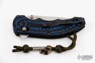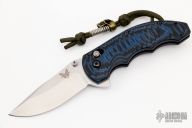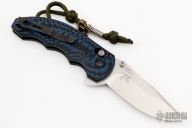This Ball Axis lock flipper by Benchmade Knives features a stonewashed clip point blade with notched thumbrest and flipper and dual thumbstuds. The handle has black/blue G-10 scales with black stainless steel liners and tip up reversible clip. Comes with original box. Excellent condition.