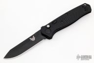 This Mediator by Benchmade Knives features a black clip point blade with a false top edge and notched thumbrest. The handle has black G-10  scales, black stainless steel liners and tip up clip, left or right reversible. Has safety. Comes with box, pouch and papers. Excellent condition.