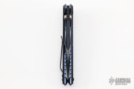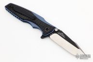 ZT's 0393 pairs an aggressive Rick Hinderer design with a solid Zero Tolerance build to create a substantial EDC folding knife. The 0393 sports a Hinderer Maximus inspired handle with a blue anodized titanium frame, carbon fiber overlays, comes with a set of black G-10 overlays as well. Its Spanto style blade is made from CPM-20CV steel in a two-tone finish with satin grinds and DLC flats. This knife is compatible with a selection of Hinderer custom hardware to make your knife stand out from the crowd. Features: KVT ball-bearing pivot for smooth and easy one-handed opening. Reversible pocket clip for secure left or right tip-up carry. 20CV Spanto blade provides excellent edge retention, superior hardness, and piercing power. Excellent condition. Comes with original box and papers. #1804