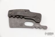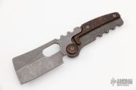 This Custom Thorn Gen3 friction folder from Serge Panchenko features a chisel ground stonewashed blade with thumbhole and notched thumbrest. The handle is stonewashed titanium with antique finished copper backstop and pivot ring, stonewashed tip up titanium clip.  Zero friction. Excellent condition. Comes with a zippered case.