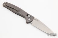 This 781 Anthem by Benchmade features a tumble finished drop point blade with dual thumbstuds. The handle is comprised of a machined and integrally constructed frame with axis lock and matching reversible tip up clip. Excellent condition.