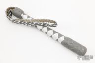 9" Grey and White Blackjack by DD Whips. Spring core grey and white kangaroo leather covered blackjack with braided wrist strap. New from maker. Comes with COA