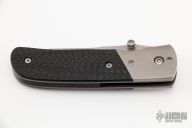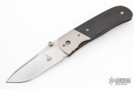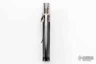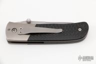 This 458 Magnum linerlock folder Greg Lightfoot features a bead blasted blade with a dual thumbstuds and notched thumbrest. The handle has titanium bolsters, carbon fiber scales, bead blast titanium liners, black linen micarta backspacer, and a tip down bead blasted titanium clip. Nice detent, blade seating and lockup. Has a few light scratches, otherwise excellent condition.
