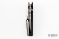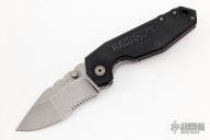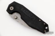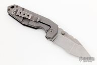 This Aquilo by Raid Ops features a tumble finished drop point blade with dual thumb studs and partial serrations. The handle is comprised of a milled G10 scale and a titanium lockside with a G10 Backspacer. The tumble finished steel pocket clip is positioned for right hand, tip up carry. Includes original box and papers. New from maker.