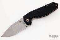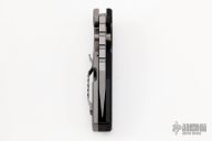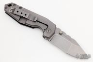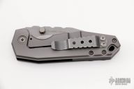 This Aquilo by Raid Ops features a tumble finished drop point blade with dual thumb studs. The handle is comprised of a milled G10 scale and a titanium lockside with a G10 Backspacer. The tumble finished steel pocket clip is positioned for right hand, tip up carry. Includes original box and papers. New from maker.