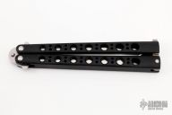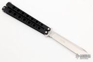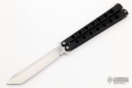 This Model 47 Balisong has a stonewashed tanto blade. Handle is black coated titanium with T-latch. Excellent condition. Comes with nylon velcro sheath. "Prototype June 2001" on blade.