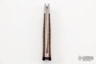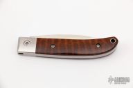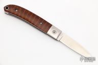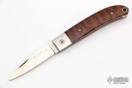 This Loveless City Knife has a satin finished drop point blade with nail nick. Handle is snakewood with stainless steel bolsters, liners, spring and lanyard hole. Comes with original box, sheath and papers. Excellent condition.