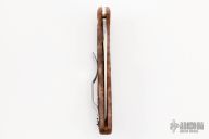 The blade itself is made from VG-10, ensuring a long-lasting edge, and sports a full flat grind for excellent slicing capability. Straddling the line between a drop point and a modified-Wharncliffe shape, this blade lends itself well to all manner of everyday needs. Jimping along the integrated thumb ramp helps with fine control and allows you to really take advantage of the fine tip. A strong lock back keeps the blade open and is equipped with a Boye-dent to avoid accidental closure.